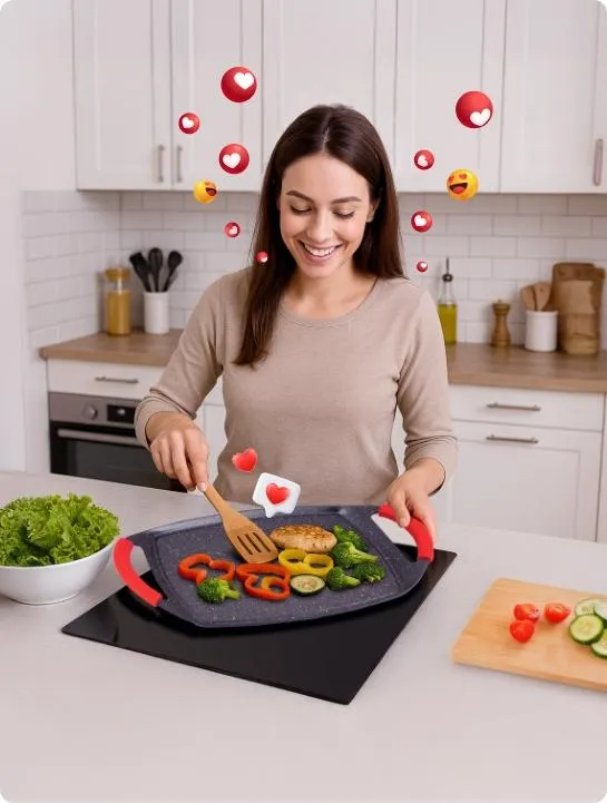 O disco difusor do WonderGrill distribui o calor de forma uniforme em qualquer tipo de fogão – gás, indução e vitrocerâmica.